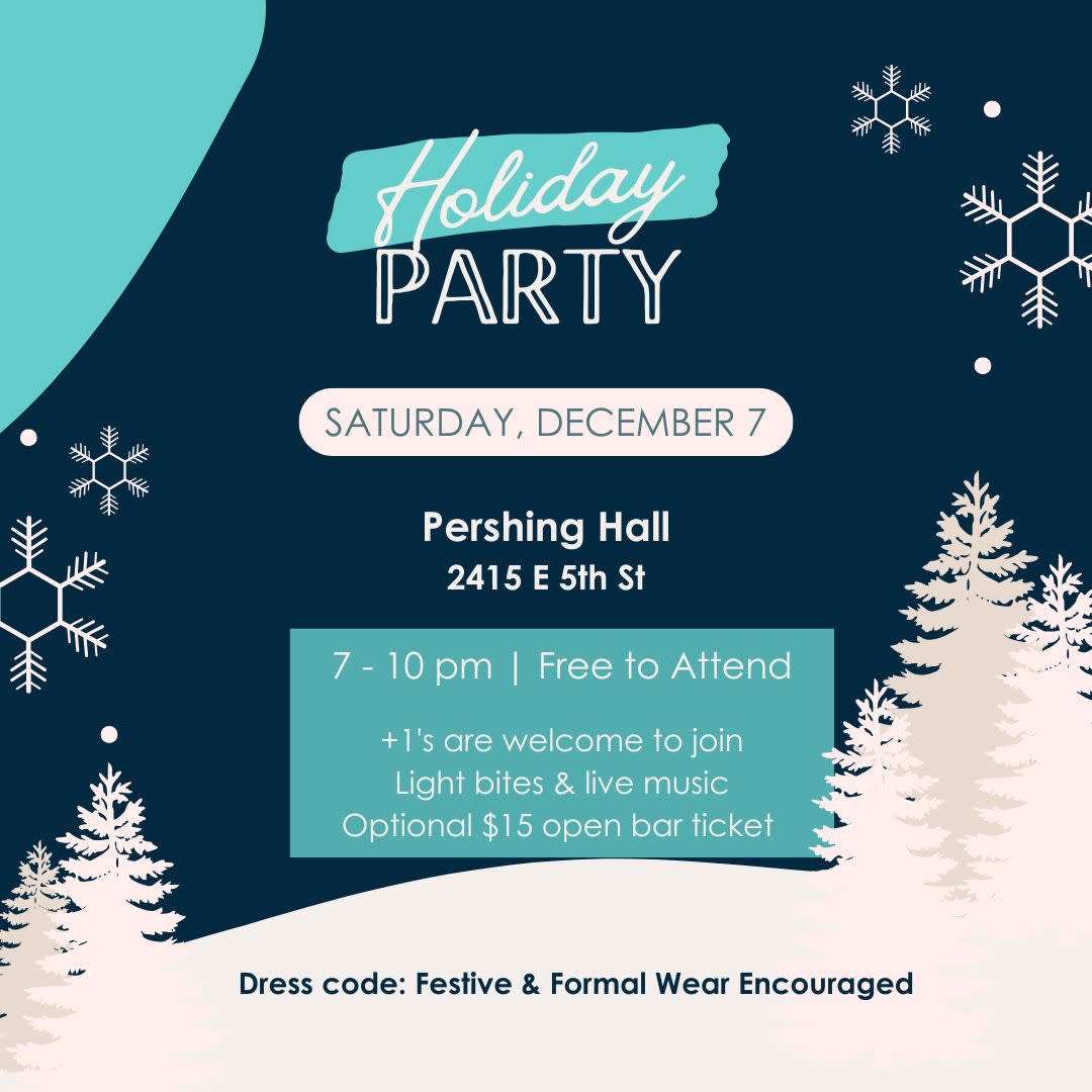 Dress to impress in festive and formal attire, and enjoy an evening filled with mingling, dancing, and a live band to keep you entertained all night. Light bites will be served throughout the event, but please note that a full meal will not be provided.